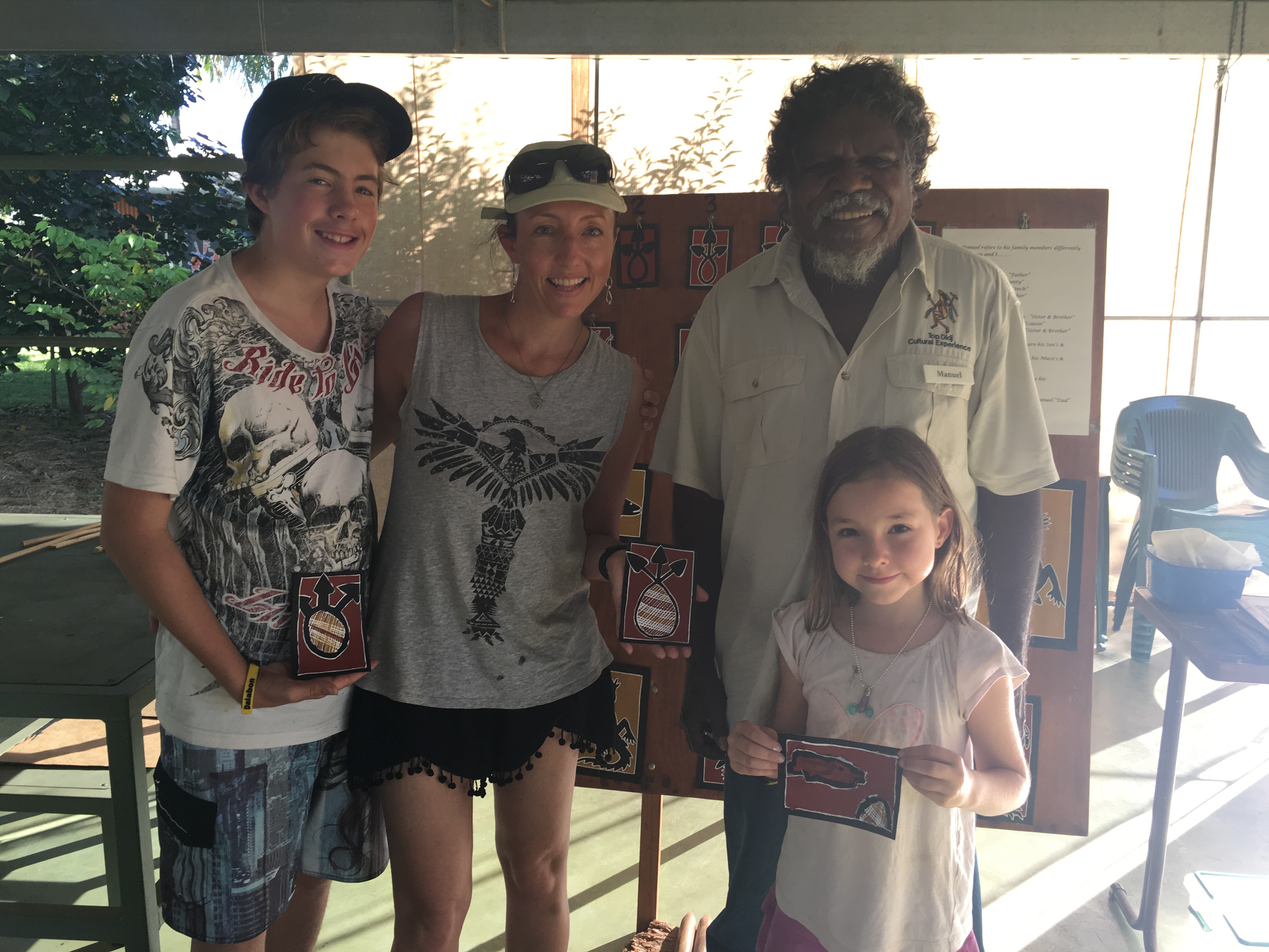 We’d booked in an Aboriginal cultural experience out at Top Didj so headed there in the afternoon. I’d met these guys at the Melbourne Caravan and Camping show and they were very friendly (the NT had the best stalls at the show I thought). Manuel shared his culture and some music with us before teaching us some traditional painting techniques (with lines instead of dots), how to light a fire (or at least how to attempt to light a fire for most of us), and spear throwing. Most of the other participants didn’t want to try their hand at spear throwing but we loved it.