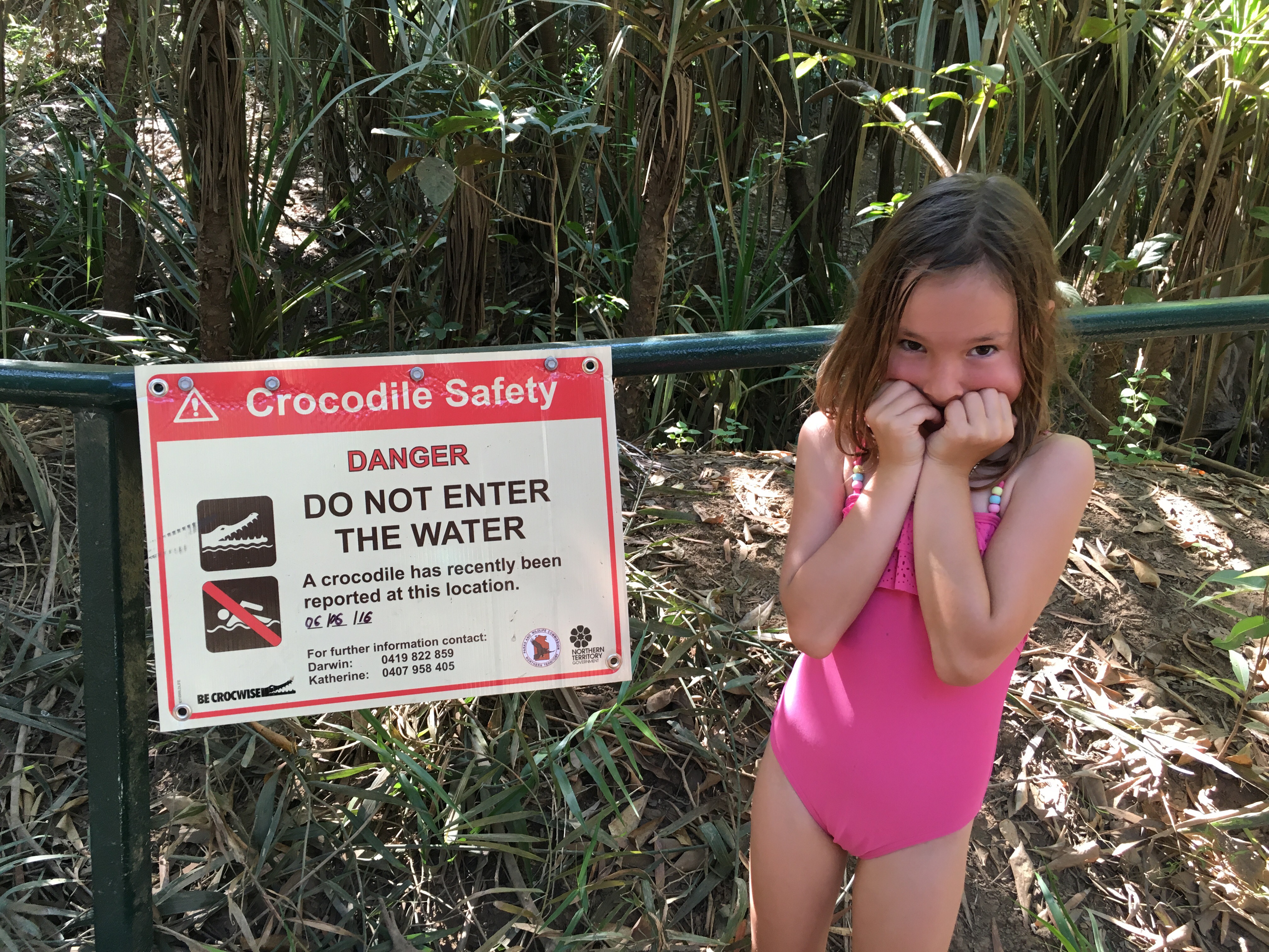 As we were about to get in we noticed a ‘Caution: croc sighted here’ with yesterday’s date on it! The sign included a phone number on it so I gave them a call to find out more – there was a large agressive saltwater croc in the nearby river that the springs fed into but he doubted the croc would swim up too far into the warm spring water.
