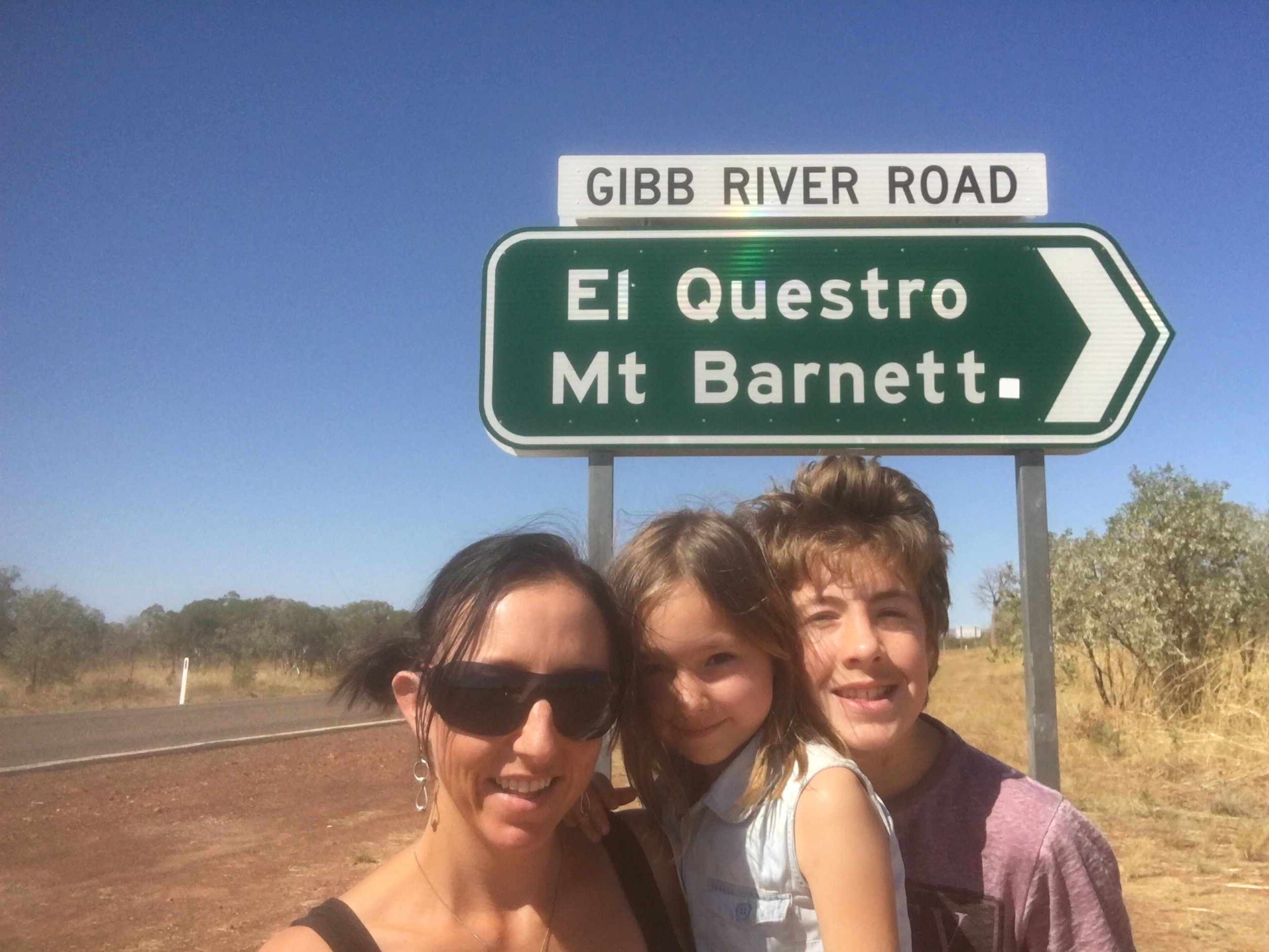 We made a quick stop in Kununnurra for some forgotten grocery items and fuel before we headed off and it wasn’t long before we hit the start of the Gibb River Road. Time for a quick family selfie and Facebook post with our brief access to internet and we were off.