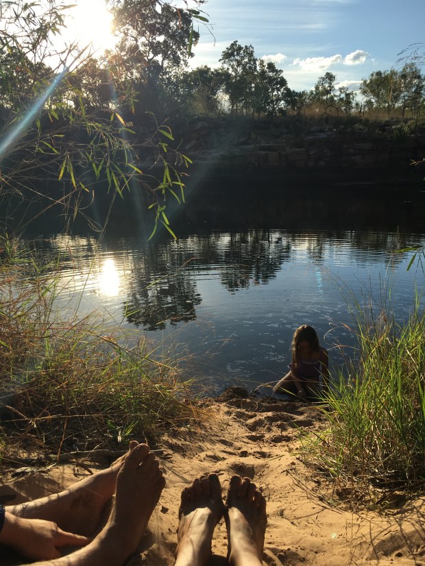 Although we were told that the water was safe to swim in – it was so secluded and we were the only ones there so you can’t help but feel an eery sense of precaution and fear that some giant salty is going to come flying out of the water at any moment. With that thought in the back of my mind, we swam in the water anyway while I admired the scenery and kept a vigilant eye on the water around us. We eventually went back to camp where we lit the fire and sat around it to eat dinner and enjoy the outback sunset.