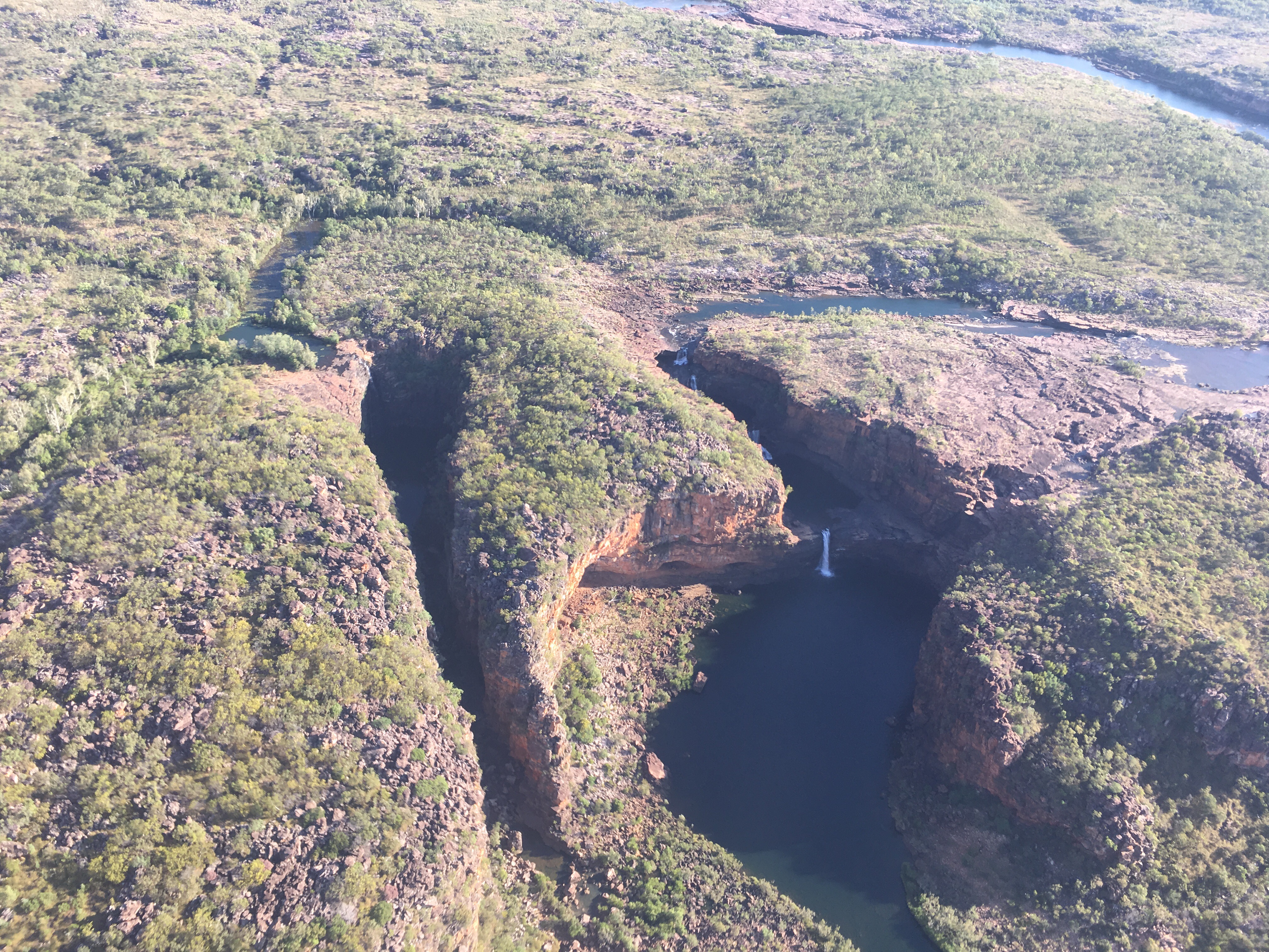 Two others booked a flight also so we managed to take our flight that afternoon up to Mitchell Falls. It was a two hour flight that took in some of the ever-changing views of the Kimberley. One minute you were flying over great mountain ranges, the next it was vast plains with meandering fresh water systems flowing into the larger salt water rivers and out to the ocean. The kids both spotted a saltwater croc in the waters below before we detoured over to the views of Mitchell Falls – although I was feeling quite queasy by this stage, the view was amazing – what a gorgeous part of the world. Seeing it by air really made us appreciate just how big and remote this area really is.