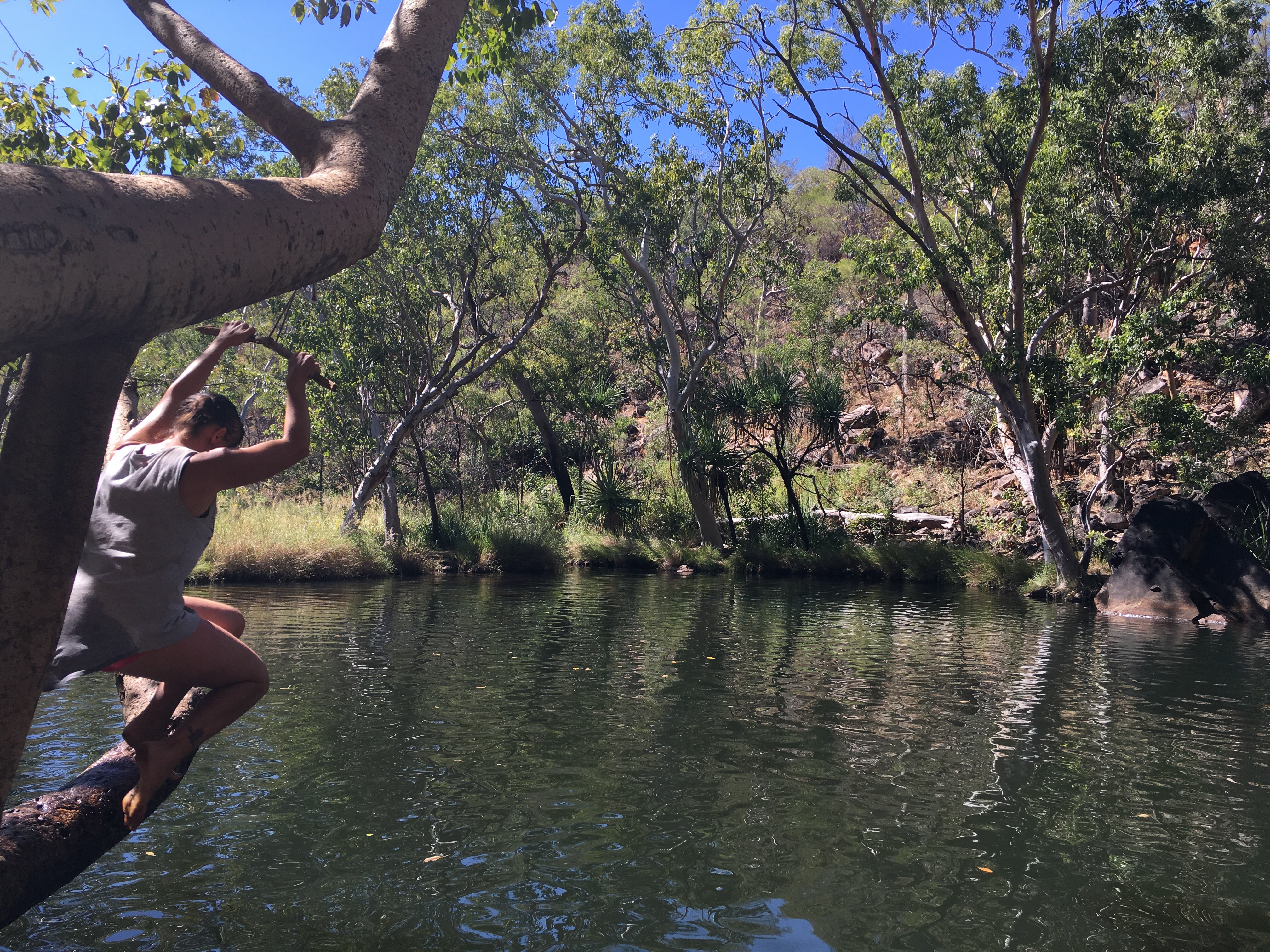 After leaving Mount Barnett and grabbing a few grocery items we stopped off at Galvins Gorge for a bit of a look. We weren’t sure what to expect so walked the 1km walk with nothing but a drink bottle. When we got to the end we were greeted with a lovely little water hole complete with water fall and swing rope.